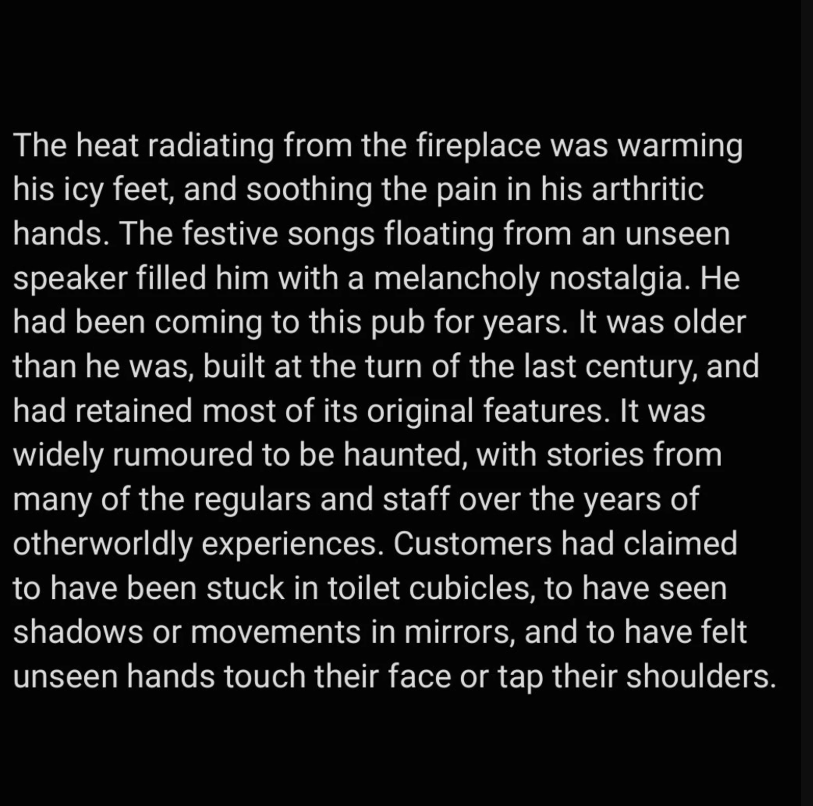 For decades, Harold has spent every Christmas Eve at his local pub, unfazed by the eerie tales the locals love to tell each year. This Christmas is no different—until he encounters some familiar faces, and the night takes an unexpected turn.